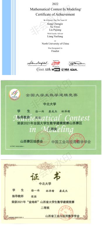 在2021年,为了在国内最权威的数学建模比赛中获得好的名次,我将课余时间基本上全投入到数学建模中,与队友们磨合,学习建模知识,提高编程水平,学习优秀论文,同时参加了一个山西省的数学建模比赛作为练手。我和队友们以及我们的指导老师对这个比赛的目标都是取得国家级的奖项,但很可惜,我们这个比赛只取得省级三等奖。成绩出来时,我已经大三上学期结束了,我已经参加了四次数学建模的大型比赛了,但我始终没有得到一个好成绩。