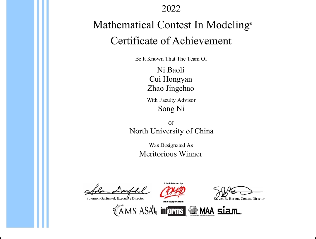 2022年5月 美国大学生数学建模竞赛M奖