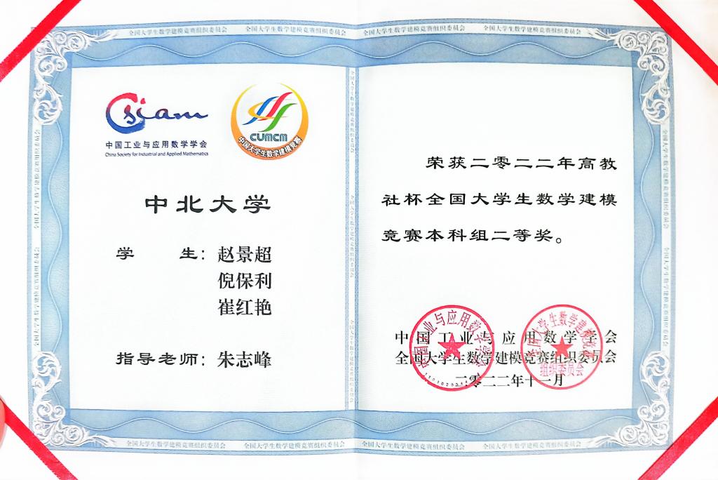 2022年12月 “高教社杯”全国大学生数学建模竞赛全国二等奖