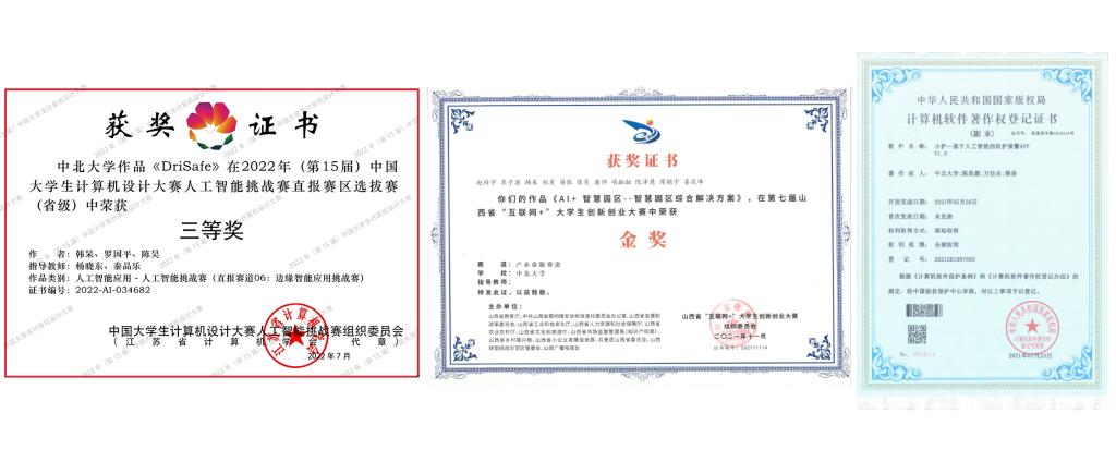 在竞赛中,荣获三项国家级、六项省级、十余项校级奖项与若干院级奖项;并拥有软件著作权一份。