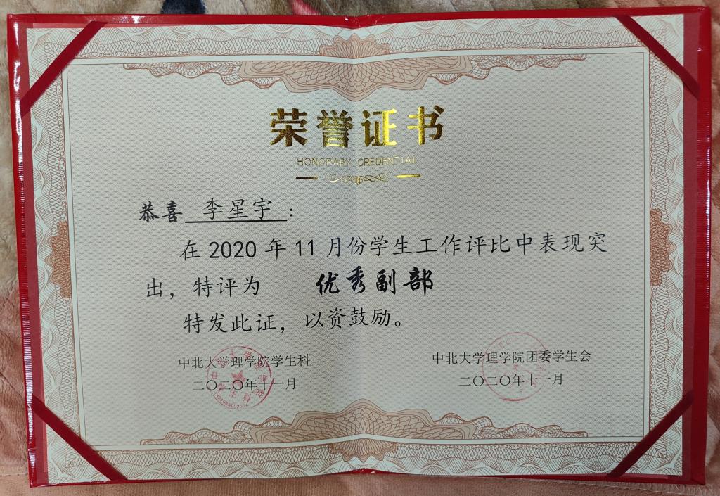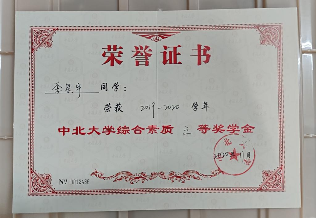 荣获2019-2020 学年中北大学理香港六合彩官网