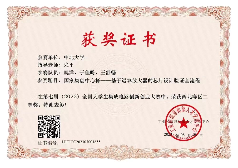 全国大学生集成电路创新创业大赛省级二等奖 |