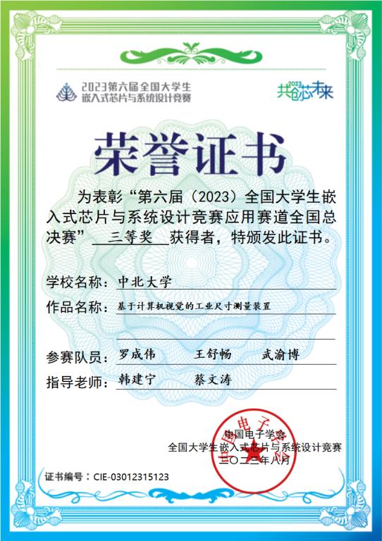 全国大学生嵌入式芯片与设计竞赛 华北赛区一等奖 |