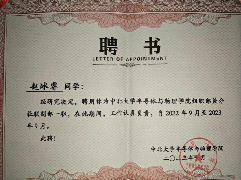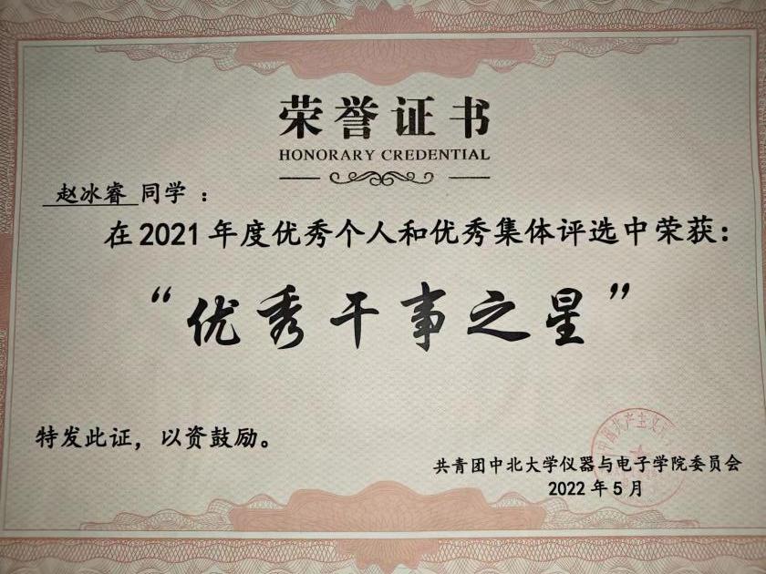 2021年9月我迈入了中北大学的校门,那时我觉得大学就像一个大宝盒一样,藏着无数的宝藏要靠自己挖掘,我们需要面对各种挫折并勇于承担。大学阶段是进入社会的缓冲,为了能在大学学到课本上学不到的知识,我在大一时参加了班委竞选,加入了院级学生会,同时还进入了实验室。我的大一是十分忙碌的,这让我学会了合理分配时间并理解一些事情,发现自己的不足并付诸时间加以改进,我也顺利地进入了学生会与实验室,在其中我合理安排时间进行多维发展,在学生会中拿到优秀学生干事以及通过实验室最终考核。学习上也一丝不苟,每周坚持去3-4次图书馆,剩余的课外时间我都会去教室自习。但是随着疫情的加重,我们不得不面临上网课的困境,在这个阶段我并没有经受住诱惑,学习成绩自然没有太突出,疫情结束后,我更加努力学习,拿到了2023年的三等奖学金与国家励志奖学金。