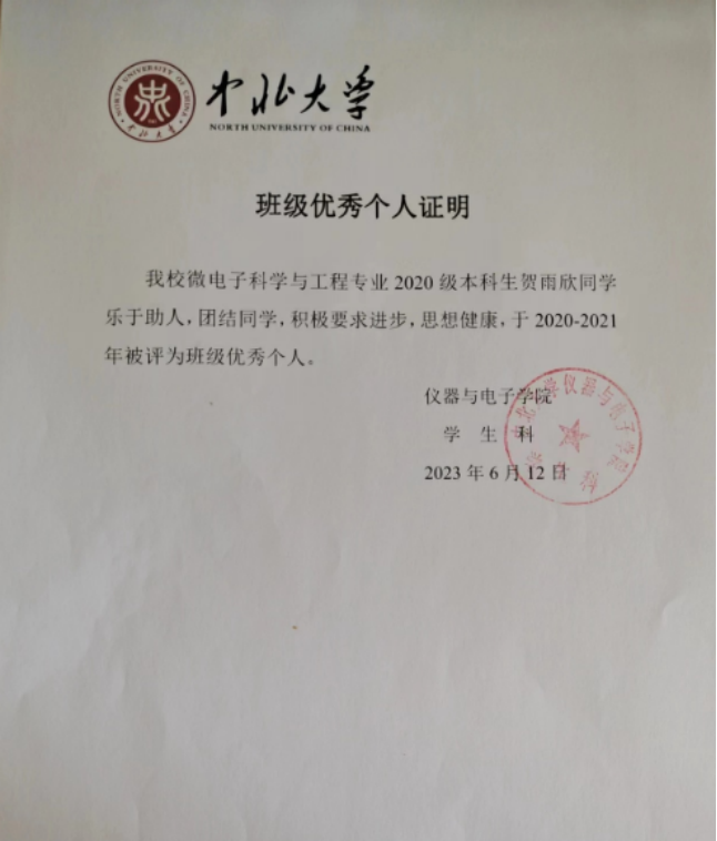 2020-2021:中北大学三好学生