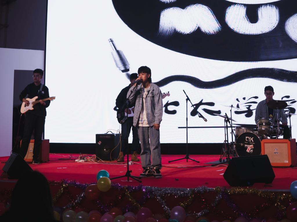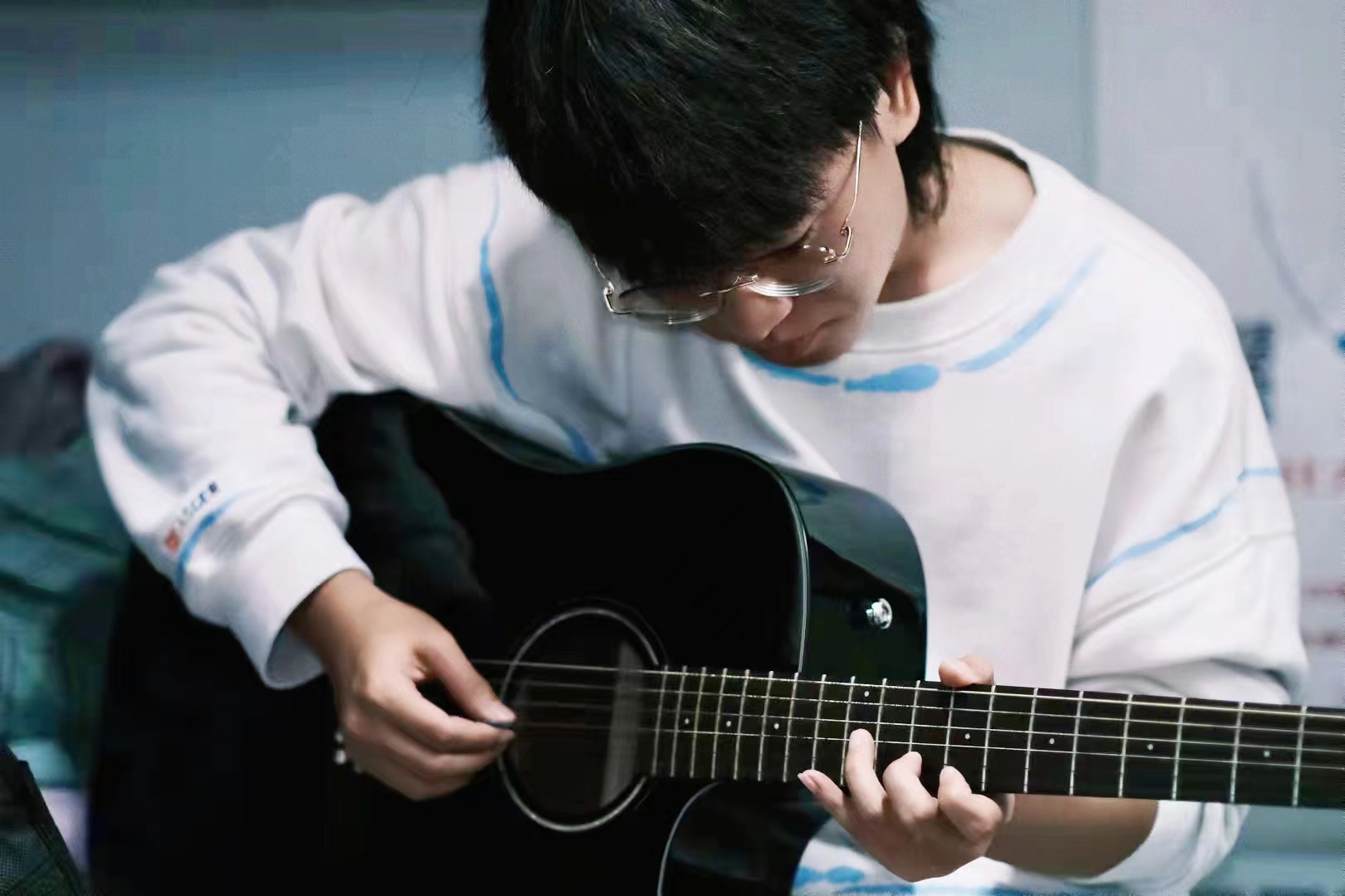此外,我还组建了一支乐队,担任主唱兼吉他手的角色。与乐手们共同创作和演奏音乐作品,我们一起参加学校的各类演出活动,为校园文化生活增添了活力和色彩。