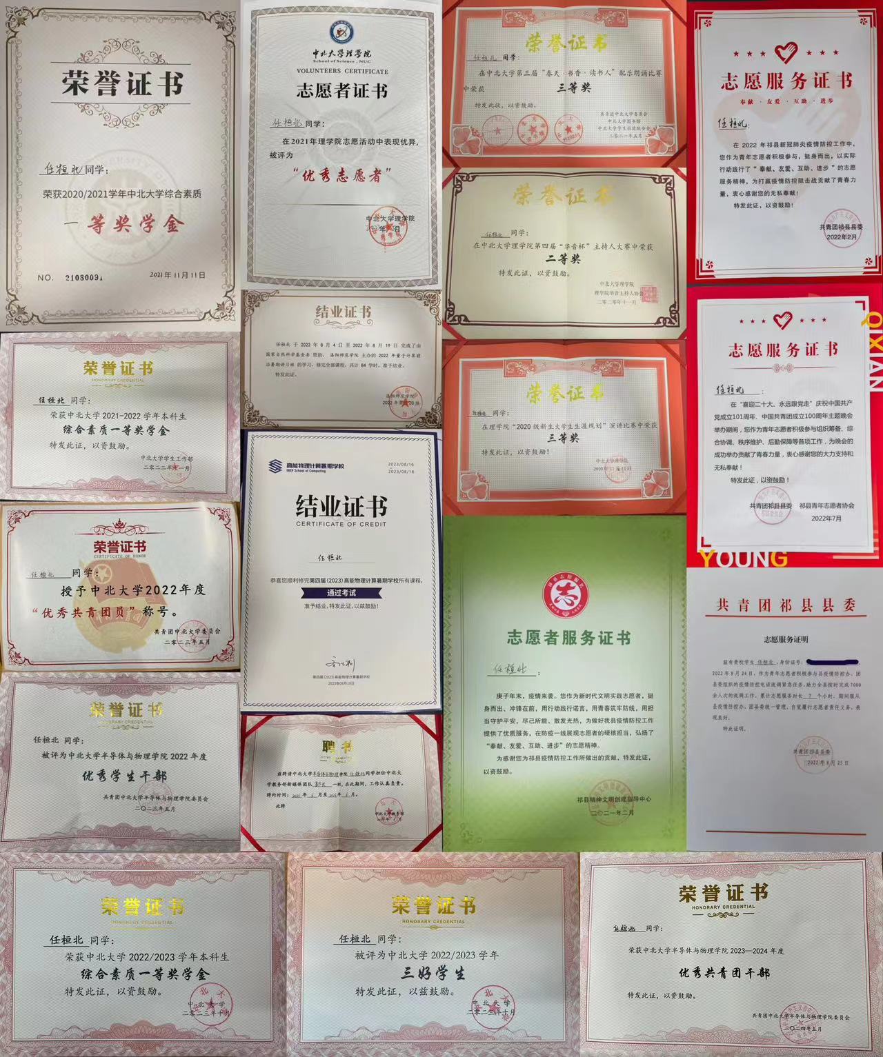 应用物理学专业20080742班学生。平均学分绩点3.69,曾担任物理党支部副书记、20080742班班长、组织宣传委员、中北大学教务处宣传团队部长、中北大学电视台主播组成员。本科期间获得校级三好学生、优秀共青团员、优秀学生干部、优秀志愿者、连续四年获得综合素质一等奖学金等荣誉。多门专业核心课程取得95+的优异成绩,现已推免至中北大学机电工程香港六合彩官网