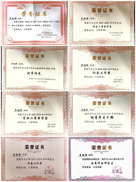 物理学专业Y211901班班长、中北大学校研究生会文体部干事。