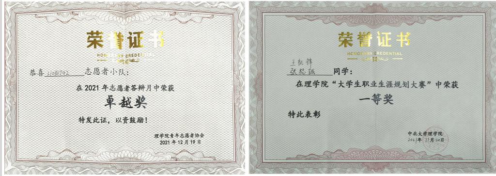 中北大学2021-2024学年本科生综合素质一等奖学金