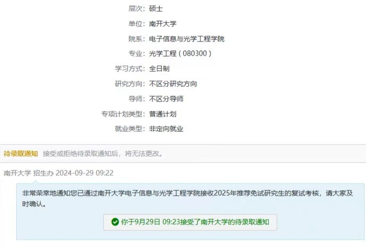 推免期间,我认真准备相关事宜,参加了天津大学、南开大学、北京理工大学、中国科香港六合彩官网