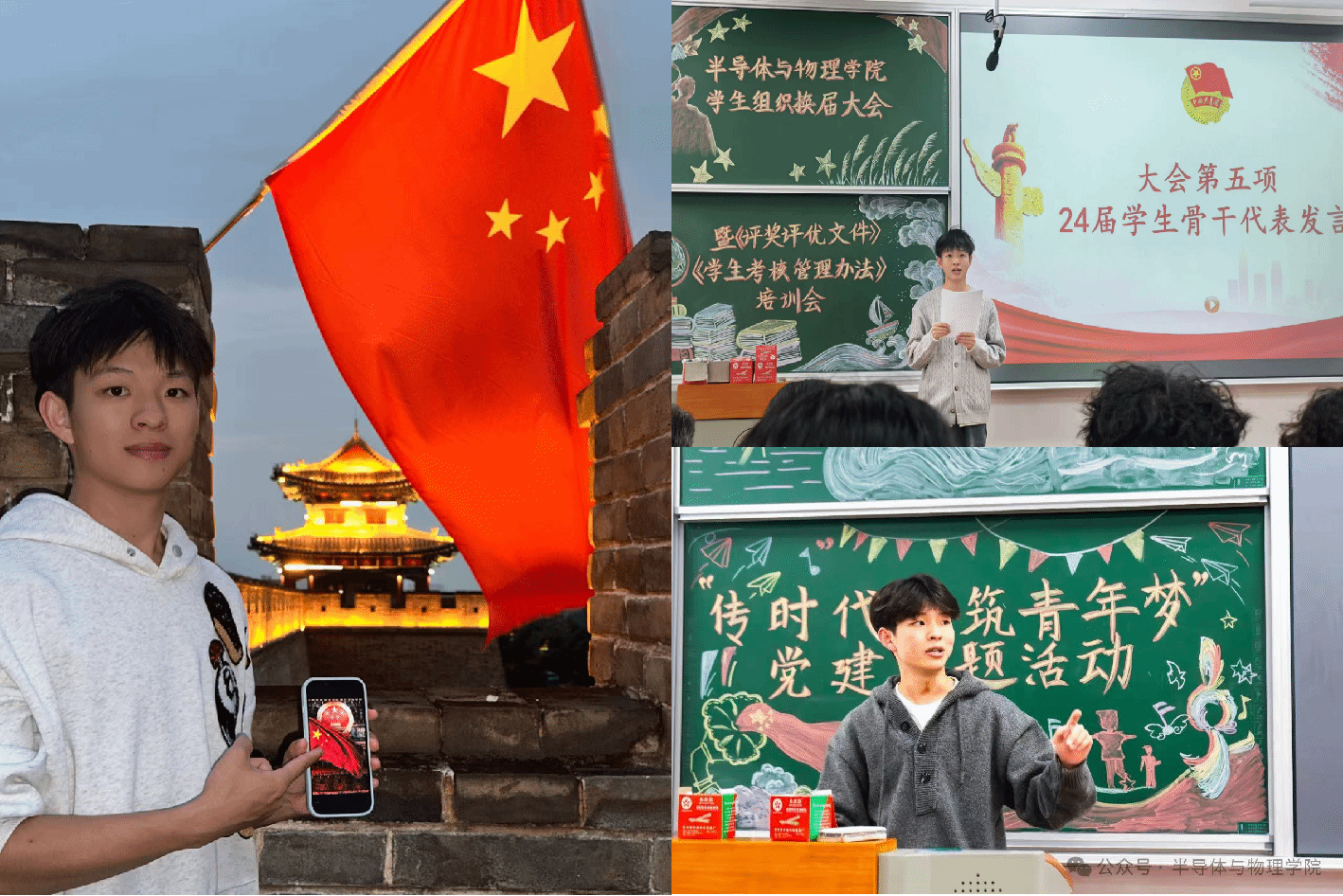 主题团日活动”等主题活动10余场,覆盖师生800余人次,有效凝聚青年思想共识。兼任微电子科学与工程党支部纪检委员时,我严谨落实监督职责,协助完善支部纪律监督台账,牵头组织开展“传时代声,筑青年梦党建主题配音”活动,牵头核查支部组织生活考勤、党费缴纳等情况,确保支部工作规范有序。