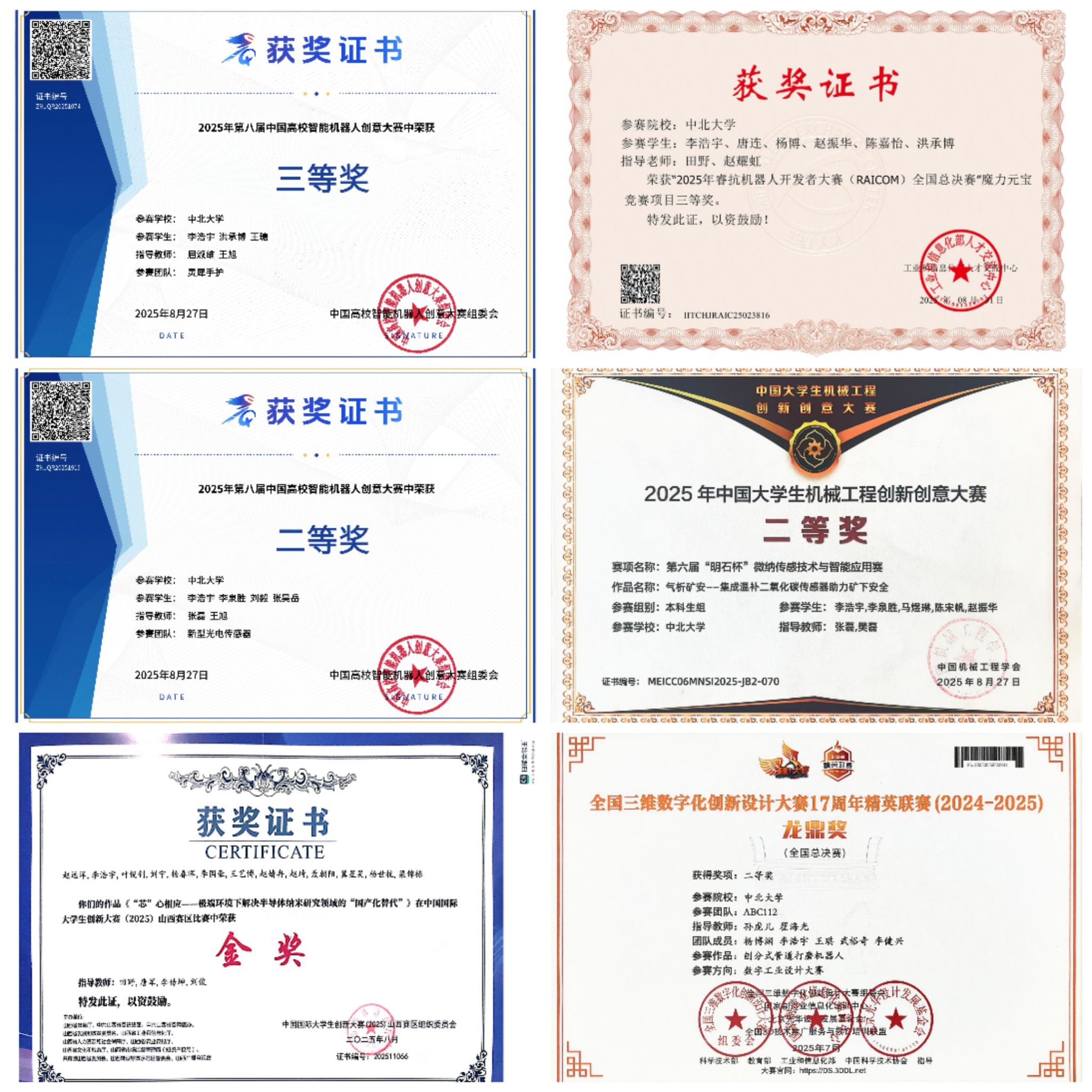 2025年8月获得中国高校智能机器人创意大赛国赛三等奖。