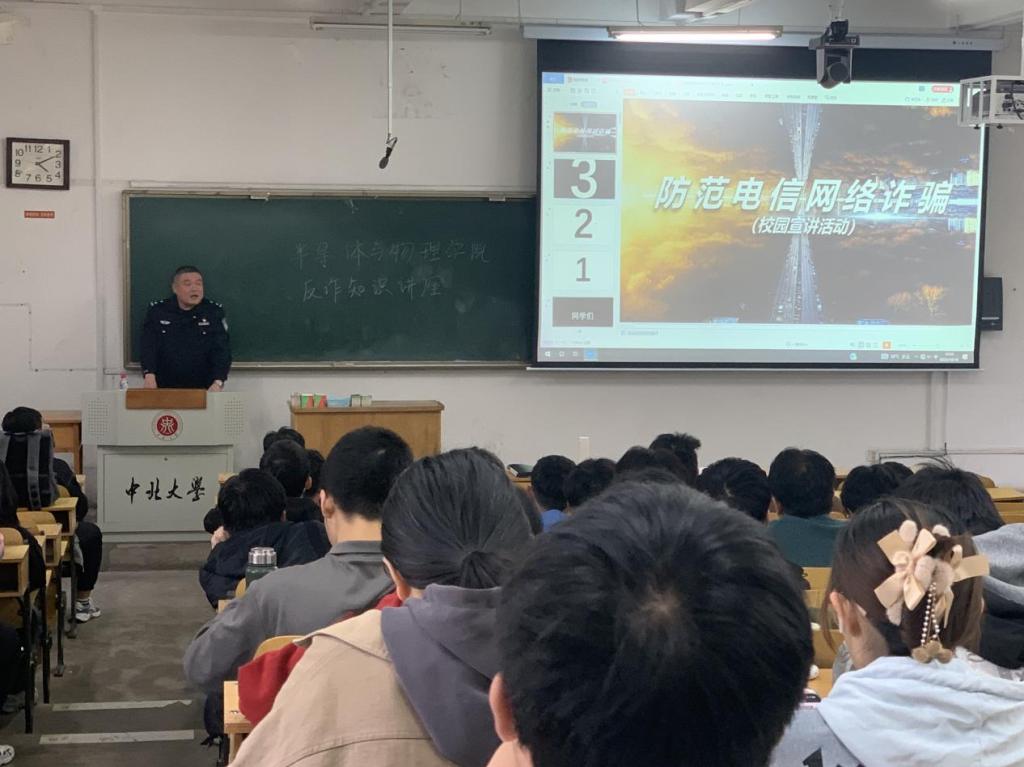 为进一步加强学生防诈骗的宣传教育,提高广大学生防范诈骗能力,我院联合太原市公安局反诈中心分别在9月27日、10月18日举行防诈骗安全教育专题系列讲座。主讲嘉宾是太原市公安局反诈中心郝警官、武警官。讲座由辅导员韩老师主持,我院全体新生、21级和22级物理专业学生参加了讲座。