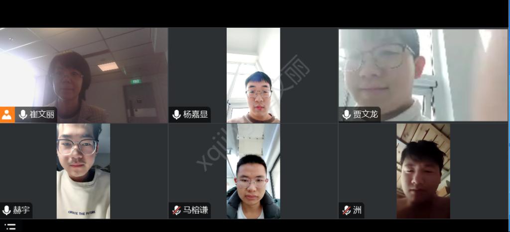本学期学业导师崔文丽老师组织23级帮助成长的5名同学(2319014234赫宇、2319014214杨嘉显、2319014217曹瑞洲、2319014235马榕谦、2319014223贾文龙)召开了线上视频会议,积极了解学生学习与生活的基本情况,并要求他们提交了有关学习方面的所思所想,具体提交素材如下: