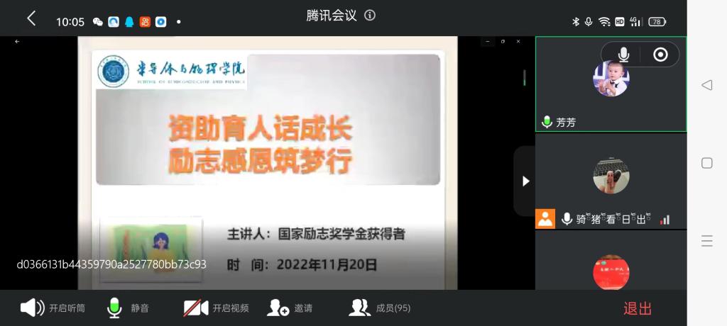 举行了主题为“资助育人话成长,励志感恩筑梦行”的活动。由于疫情防控,本次活动采取线上举行, 21级与22级全体同学、国家励志奖学金获奖者都参加了本次活动。