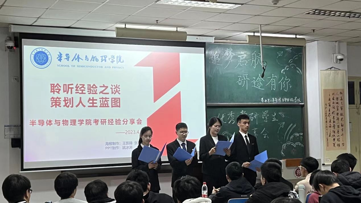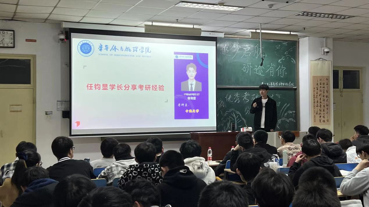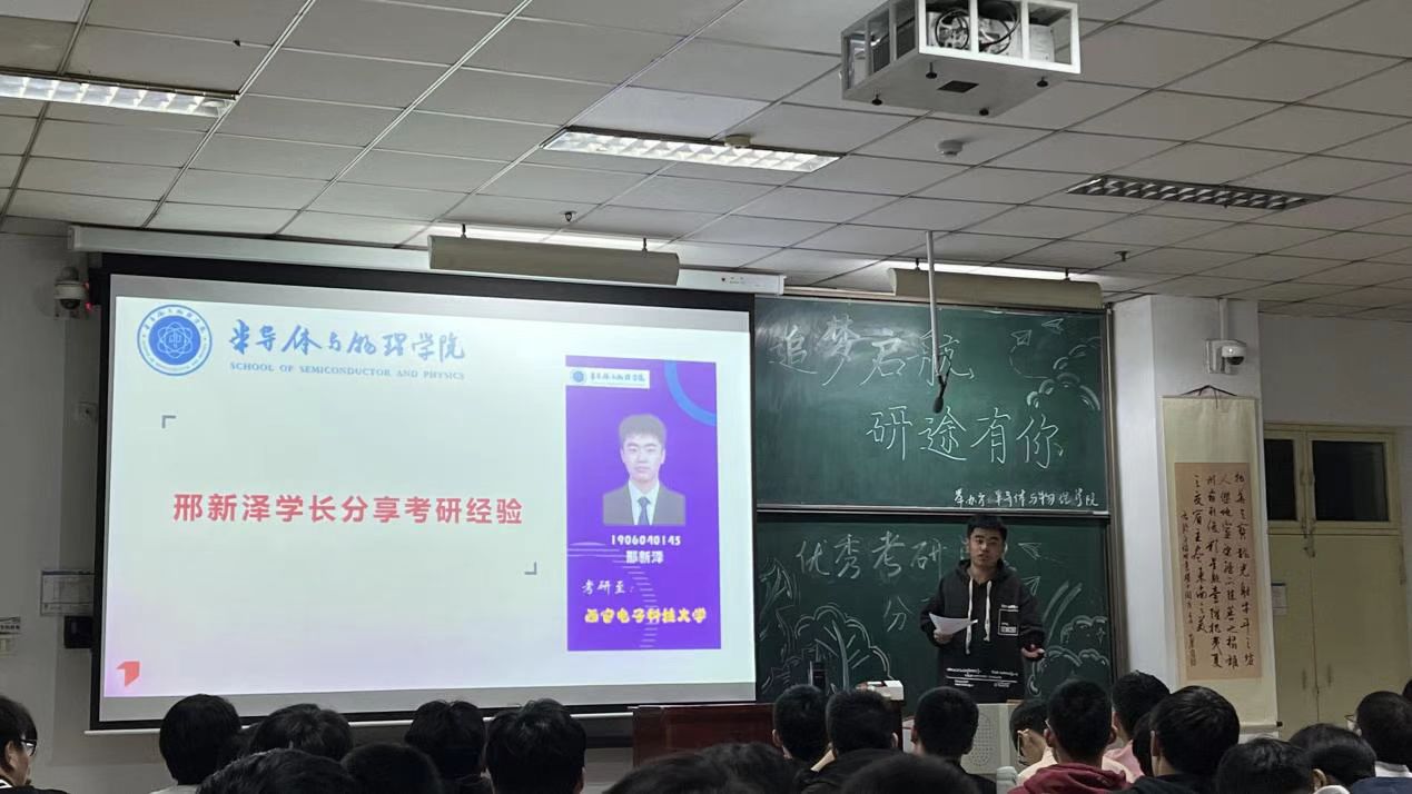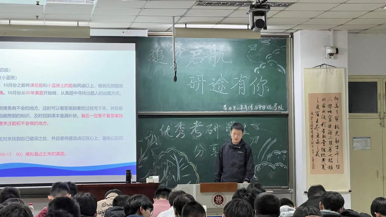 “追梦启航 研途有你”优秀考研学生分享会在11112教室举行。活动邀请了考研成功上岸的学生代表任钧显、邢新泽、郝晋华、李星宇为同学们分享了他们宝贵的学习经验,大一、大二学生积极踊跃参加了本次活动,活动由周远乐、王鑫琦、李佳芮与赵君正四位同学主持。