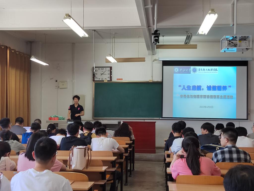 荆伟伟老师作为最贴近学生的老师之一,经常和同学们分享一系列的经验干货。这次活动,她从学校和社会角度出发,和学生分享了一系列诚信的案例,让学生对诚信有了更深刻的理解,意识到诚信对一个人人格养成的重要性,甚至决定一个人的成败。同时荆老师也进行了和毕业生的最后一次交谈,真情实感的流露激起了学生们的感恩之心。荆老师的循循善诱,如暖暖夏风,在毕业之际,仍能吹入学生的心,余温不绝。
