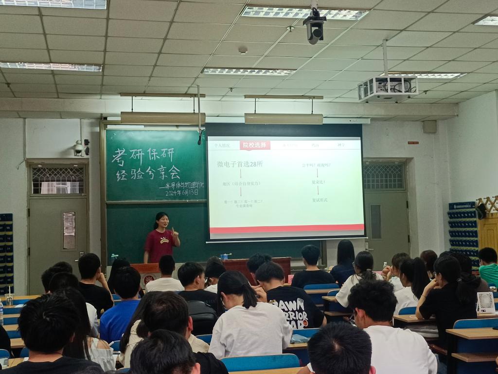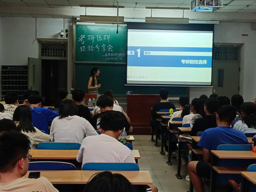 “考研与保研分享会”在11107H教室举行。本次活动邀请了我院7位已经保研或考研上岸的学长学姐,他们为在场低年级同学分享了自己在考研路上的心路历程以及本科期间个人的成长经历。本次活动由孙佳怡同学主持。