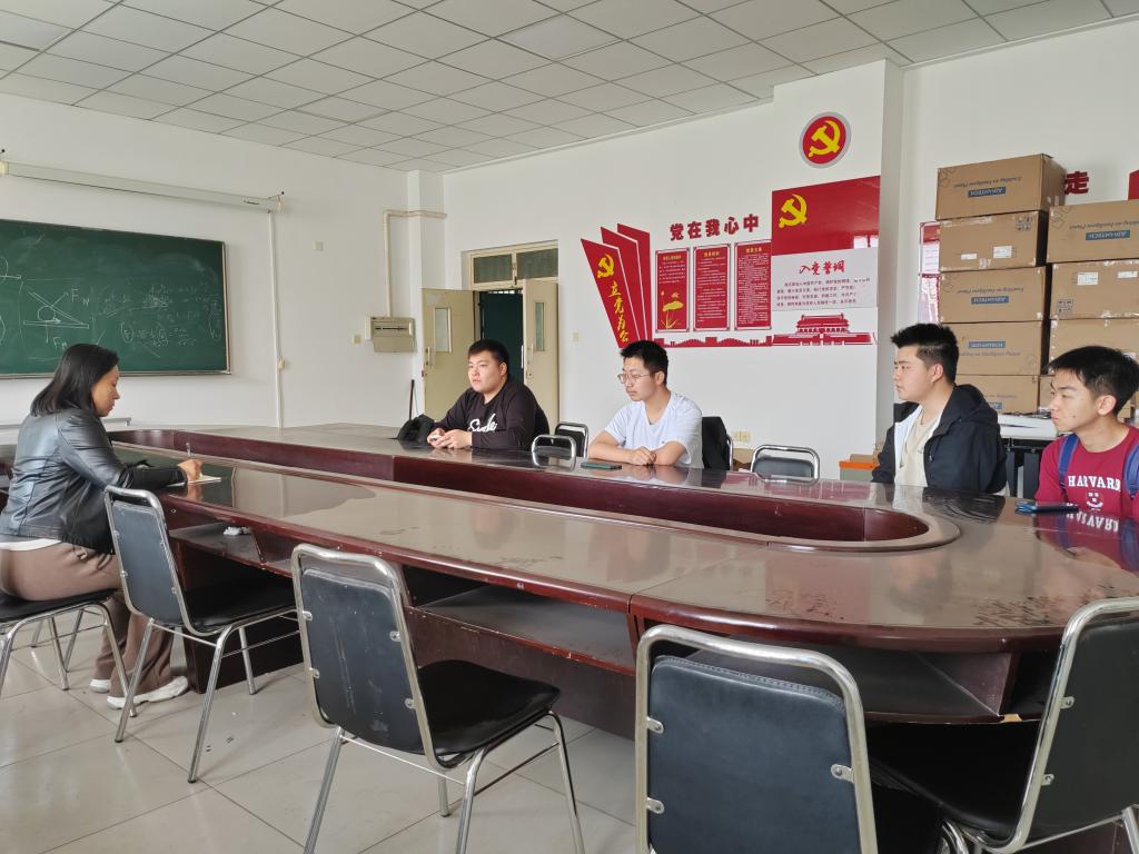 2025.4.28下午15:00,在教学九号楼09810会议室,段美玲老师邀请了2021级应用物理学宁邢富同学与2024级微电子专业的4名同学就大学生活的一些话题进行了交流。宁邢富同学是应用物理学专业即将毕业的大四学生,刚被首都体育香港六合彩官网