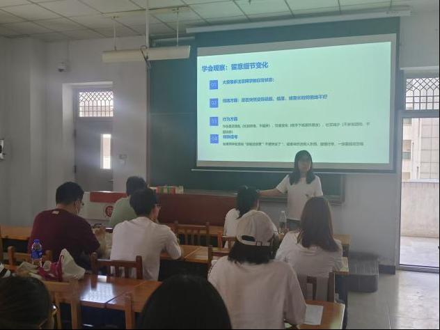 培训伊始,心理发展指导中心的屠鸣老师详细介绍了毕业季学生常见的心理问题,如离别焦虑、就业压力、未来规划迷茫等。通过生动的案例分析,让心理委员们对这些问题有了更深刻的认识,明白这些问题并非个别现象,而是在学生生活学习中普遍存在的心理困扰,需要大家共同关注和积极应对。