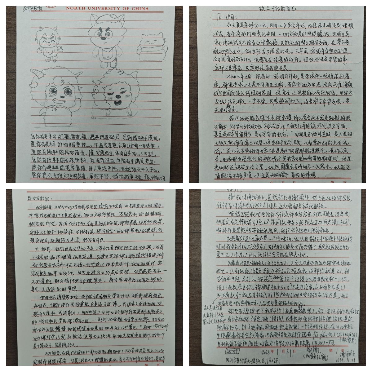 “希望四年后拆开这封信时,能笑着和‘当时的自己’说‘我没辜负你’”“这封信里藏着我对半导体专业的好奇,更藏着对成长的渴望”……回收现场,不少新生分享了书写感悟。11月10日,随着最后一批信件完成分类归档,活动核心工作顺利收尾。据辅导站负责人介绍,回收的信件不仅是新生与未来的约定,更将为后续开展精准化心理健康服务提供重要参考。